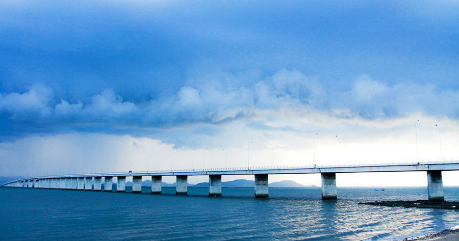 Overpass Thi Nai Bridge - Vietnam’s largest cross-sea bridge, you will go to Ky Co Beach, one of the most beautiful beaches in Quy Nhon.