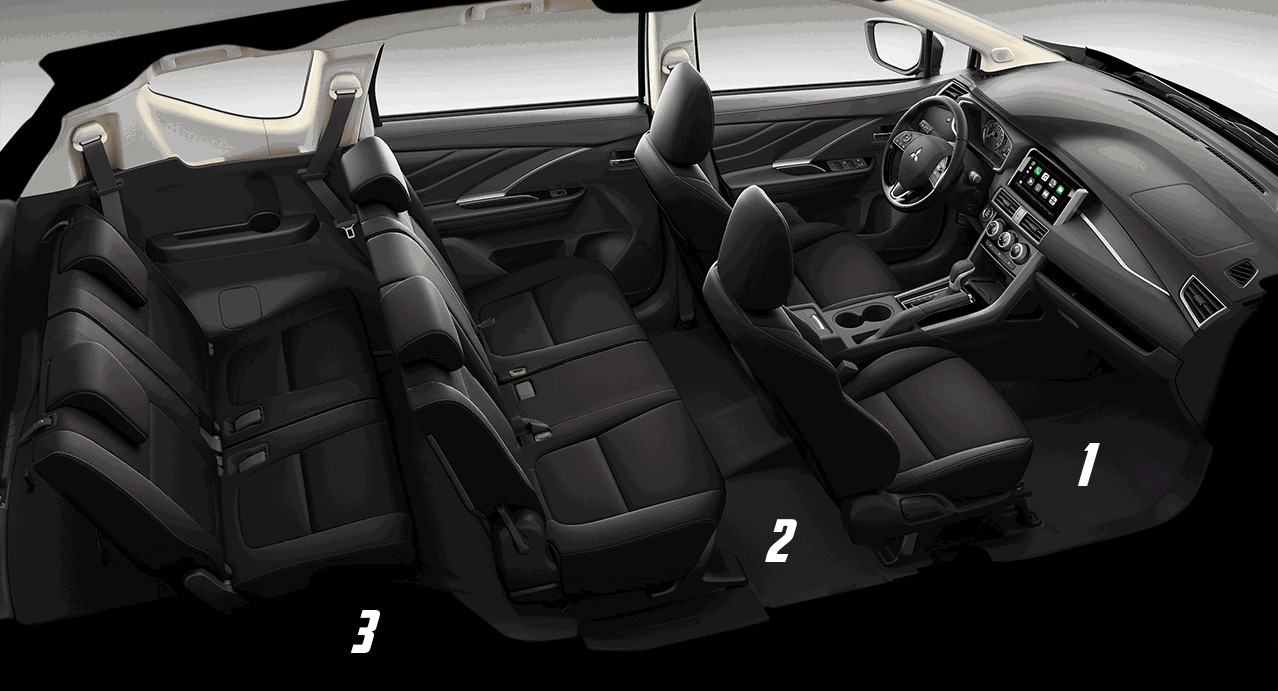 3) Luggage Area: The third row of seats fits up to seven people. When not in use, they fold flat, expanding the amount of storage space.