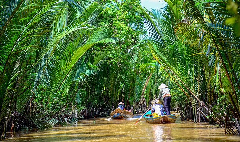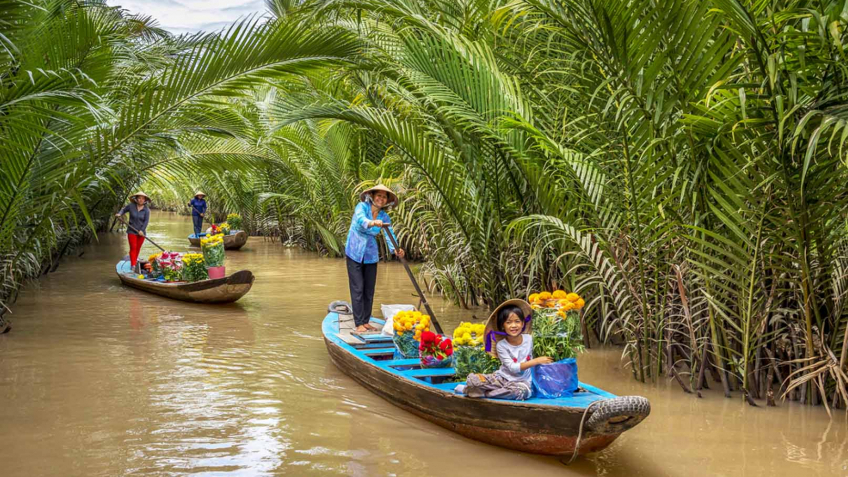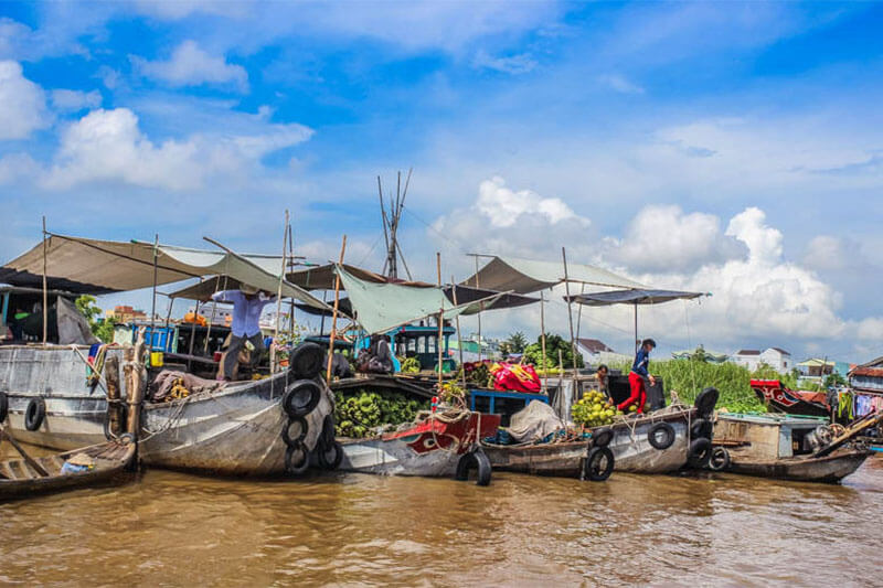 After breakfast, you will take a boat to explore the floating market at Cai Rang, one of the most exciting floating markets in the Mekong Delta.