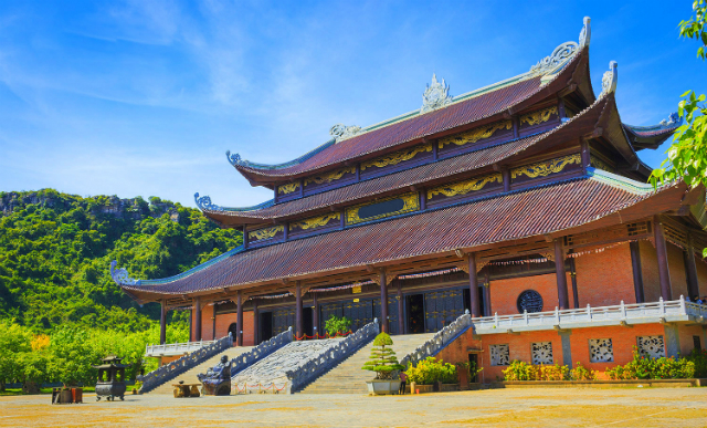 When you arrive, you will visit Bai Dinh pagoda which has received many records such as the largest pagoda of Vietnam, the biggest gold–plated copper of Asia, and the longest lobby in Asia.