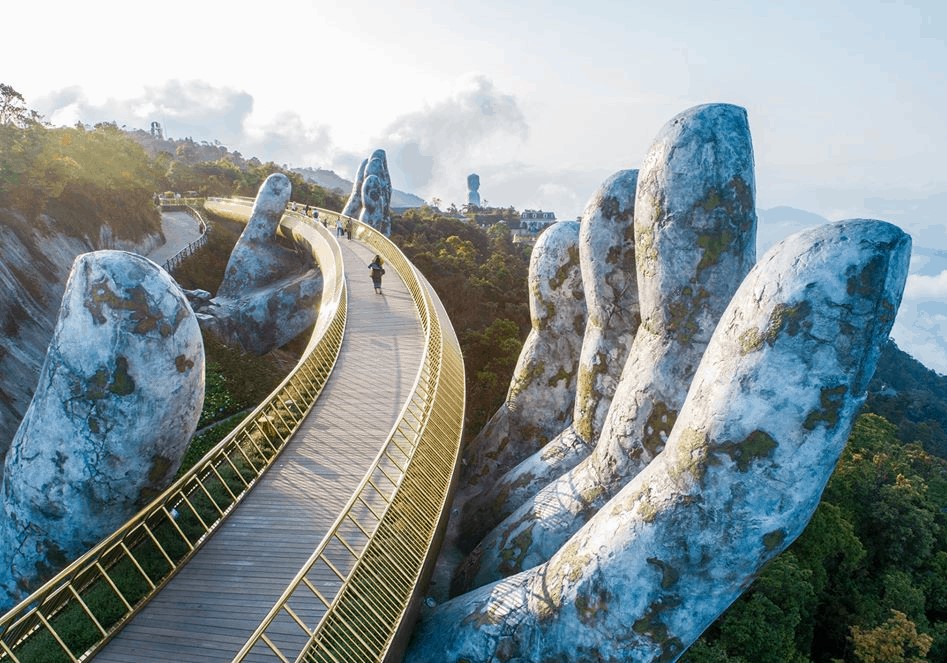 Upon arrival at the foot of Ba Na Hills, you will enjoy a height of more than 1,480 m, watching the panoramic view of Ba Na mountain with a modern cable car system. Don’t forget to spend some time taking photos when you set foot on the Golden Bridge. Continue to the top of the mountain, explore the French Colonial Station, and visit the French Village.
