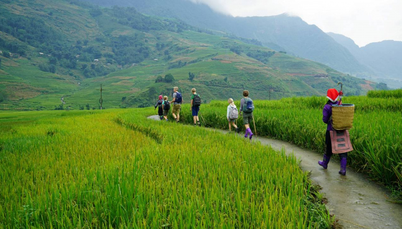 9.00: Start trekking to Lao Chai and Ta Van villages and Muong Hoa valley. Enjoy the spectacular views of the beautiful valley towards Fansipan – the highest peak of Vietnam and Indochina. Trek through the villages of the Black H’mong ethnic minority to learn the way people weaving and embroidering their clothes. Have a break in a local restaurant for lunch then keep going down to enjoy colorful rice paddy fields and reach Ta Van village where the Dzay ethnic people inhabited.